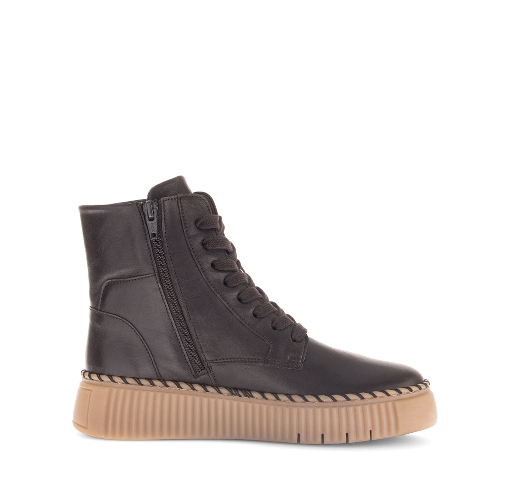 Step up your footwear game with this fabulous ankle boot style. Featuring a bold, chunky sole for a modern look, these shoes are as comfortable as they are fashionable. The lace-up fastening allows for a customisable fit, while the convenient side zip makes slipping them on and off a breeze. Perfect for pairing with anything from casual jeans to skirts, this versatile style is designed for those who want to combine ease with style.
