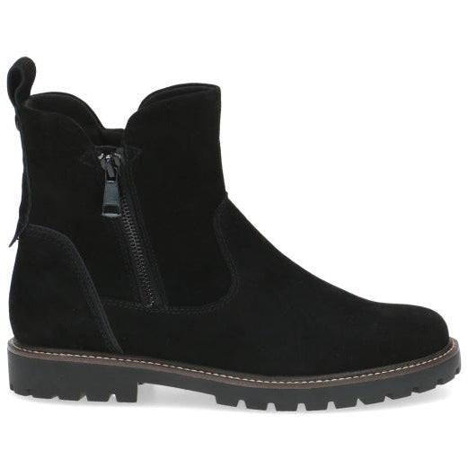 The casual boot is another wardrobe staple for every Autumn/Winter season and this one ticks all the requirements. With a slightly chunkier sole it is perfect for wearing with any outfit, it has a double side zip fastening and is rich black suede with contrast stitching.