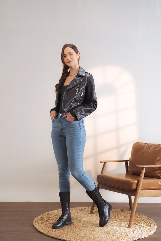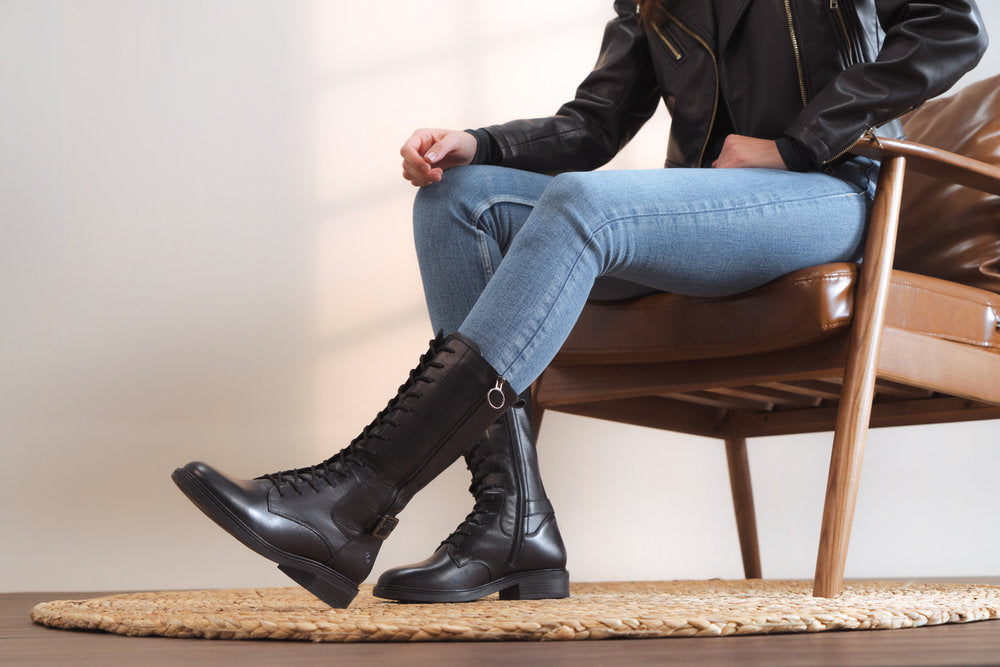 This boots sits somewhere in the middle of a knee high boot and an ankle boot - a mid boot we call it! The laces at the front are great for adjusting the fit but don't worry it has a handy side zip to us for ease when putting it on and off.